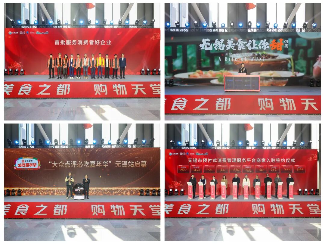 启动活动精彩纷呈,现场播放了“冬日悦享”百场促消费活动宣传片,以音乐微短剧形式解读和推介商务、民政、住建、文旅等部门“以旧换新”等促消费惠民政策;发布首批“服务消费者好企业”榜单,首发美食纪录片《无锡美食让你甜》,启幕“大众点评必吃嘉年华”无锡站;无锡市预付式消费管理服务平台商家以及首店品牌入驻商家进行了现场签约,房地产企业代表推介了“百盘迎春”房地产优惠活动,“太湖游轮之旅”正式开启。