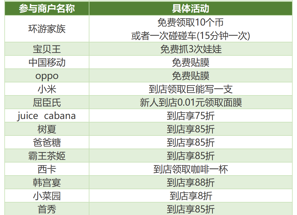 注:以上所有具体活动内容,以品牌方现场情况为准