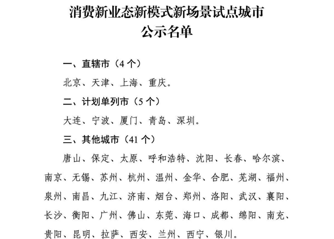 我市被列为“消费新业态新模式新场景”试点城市(公示)