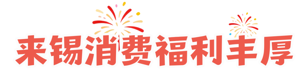 福满全澄”为主题,发放“暖冬惠民消费券”200万元,联动金融机构、活动商户联合开展配套优惠让利,整体优惠不低于3000万元。宜兴推出“暖冬嗨购”惠民让利活动,春节期间投放300万元汽车消费补贴和200万元惠民消费券。梁溪围绕零售、家电、文旅、餐饮、住宿等多领域,推出超50余场新春特色促消费活动,商家让利超千万元。锡山开展“骐骥驰骋 乐享锡山”新春促消费系列活动,组织各类商文旅体农消费活动超30场,联合多方发放超1000万元消费优惠。惠山开展“春日宴·惠山之味贺新春”促消费系列活动,发放300万元购车消费券,300万元百货、餐饮消费券。滨湖推出“欢喜无锡快乐Go·滨纷超乐派”系列500万元汽车消费补贴、200万元餐饮消费券,全面激发市场活力,营造喜庆红火的节日消费氛围。新吴开展“约惠新吴 骏启焕新”促消费活动,发放汽车消费补贴500万元、百货餐饮消费券300万元。